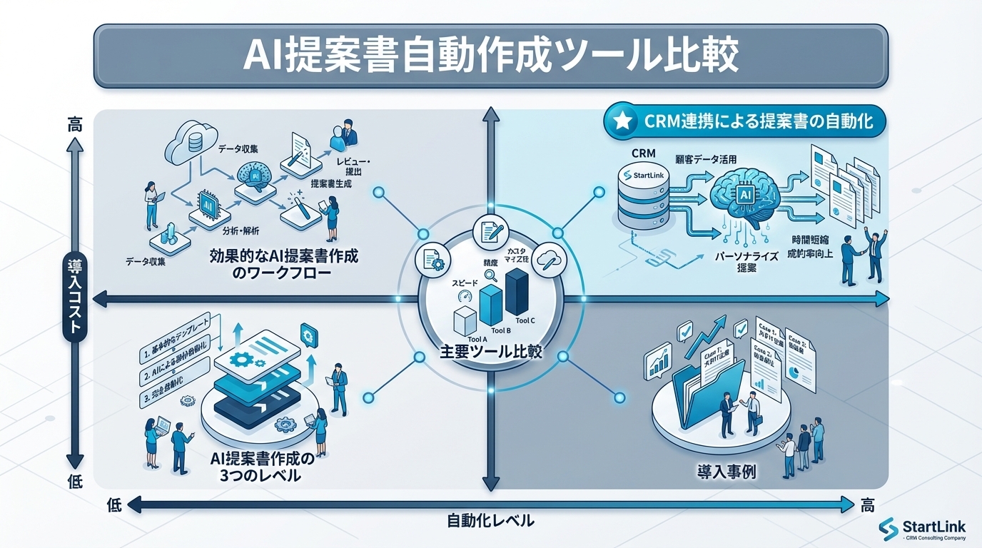 metaDescription: "AIで提案書を自動作成する方法と主要ツールを比較。営業資料の作成時間を大幅に短縮し、提案品質を均一化する具体的な活用方法を解説します。"