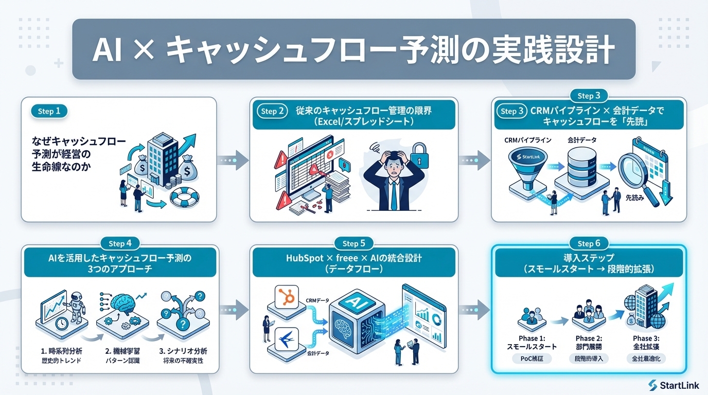 title: AI × キャッシュフロー予測の実践設計|CRMパイプラインと会計データで資金繰りを先読みする