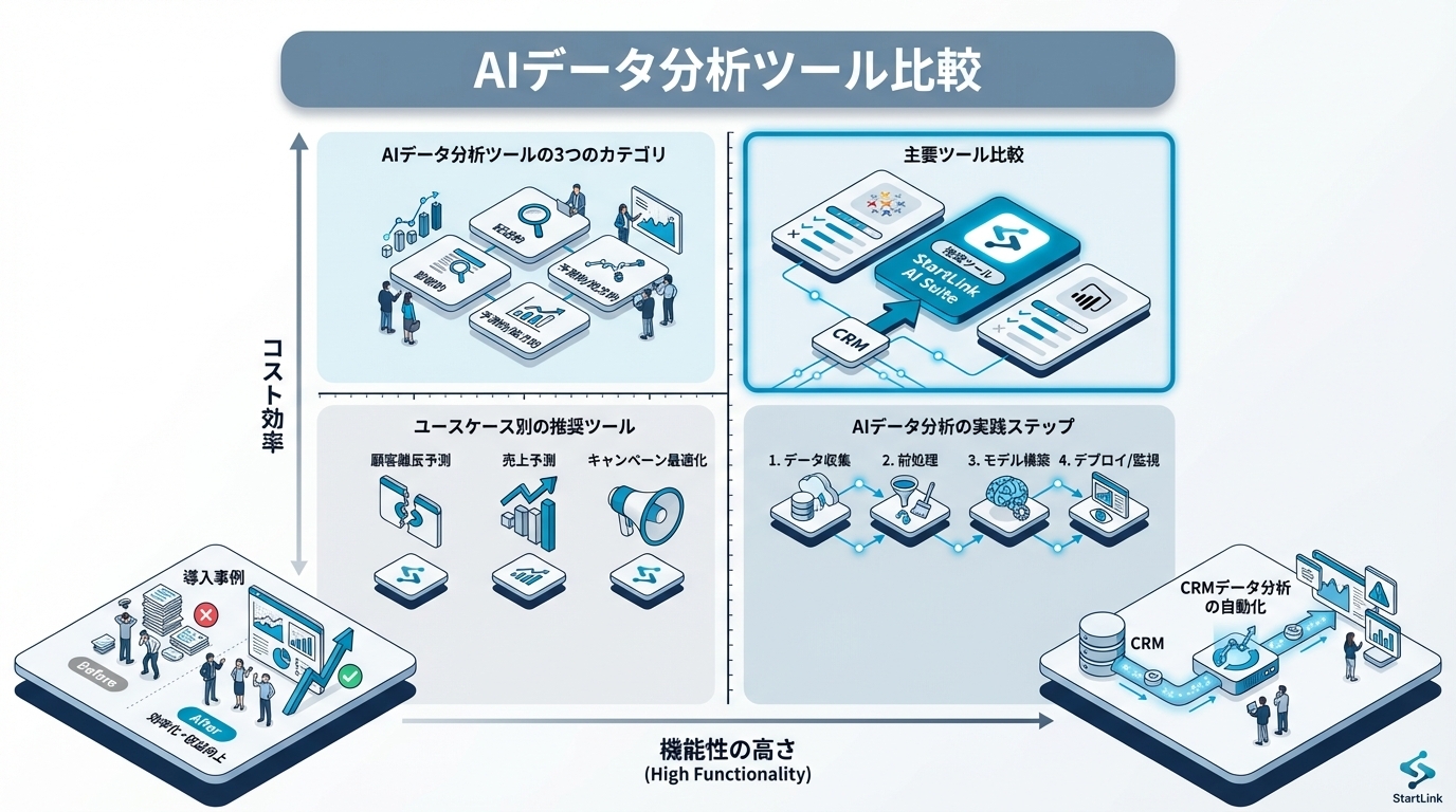 title: "AIデータ分析ツール比較|ノーコードで使える主要ツールの選び方"