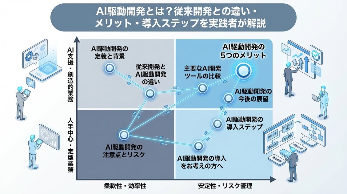 - AI駆動開発とは、AIをコーディング・設計・テスト・レビューの全工程に組み込み、開発生産性を劇的に向上させる開発手法です