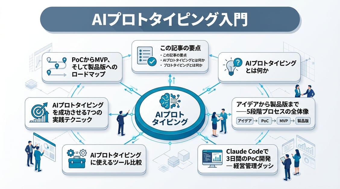 本記事では、AIプロトタイピングの基本概念から実践的な手順、そしてPoCからMVP・製品版へとスケールさせる方法までを体系的に解説します。