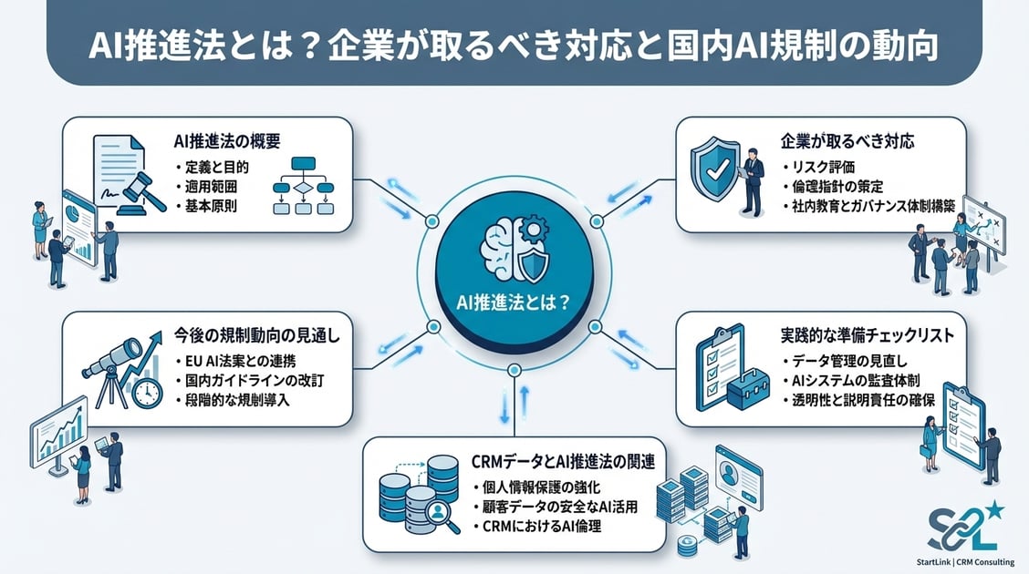 AI CRMで実現するAI推進法とは?企業が取るべき対応と国内AI規制の動向