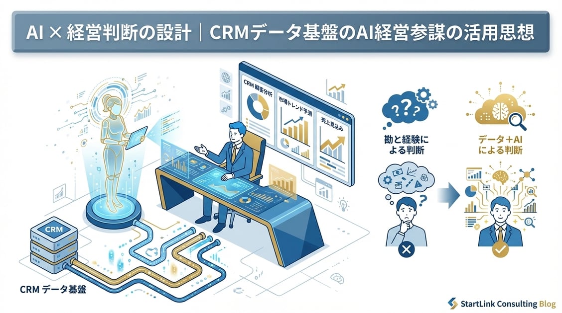 本記事では、CRMデータを基盤とした経営参謀AIの設計思想、具体的な活用シーン、そして導入までの実践ステップを解説します。