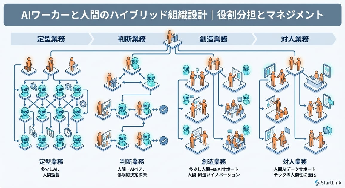 AIワーカーと人間のハイブリッド組織設計のポイントを整理します。
