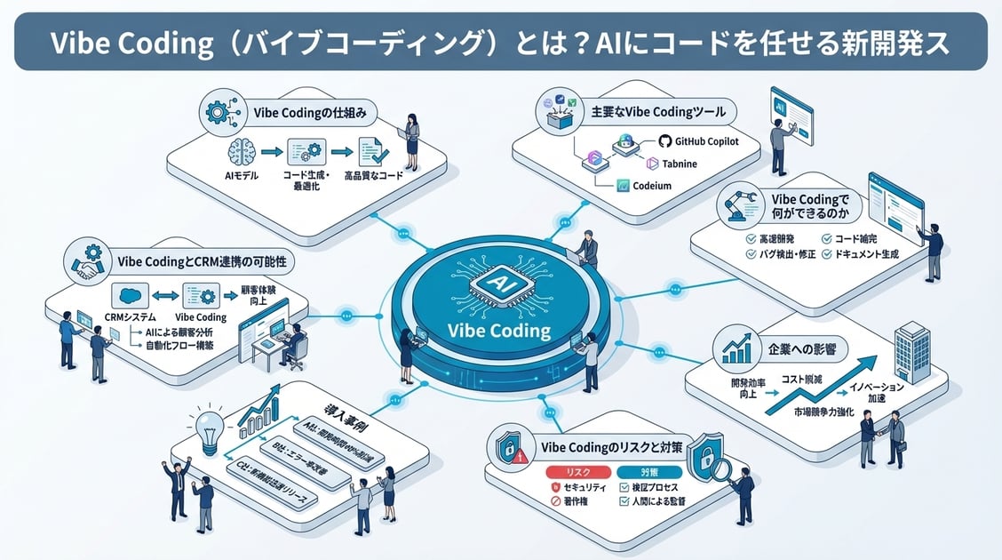Vibe Coding(バイブコーディング)とは?AIにコードを任せる新開発スタイルを実務に落とし込むには、CRMツールの活用が不可欠です。詳しくは「AI CRMとは?2026年のCRM × AI活用トレンドと実践的な導入ステップ」で解説しています。