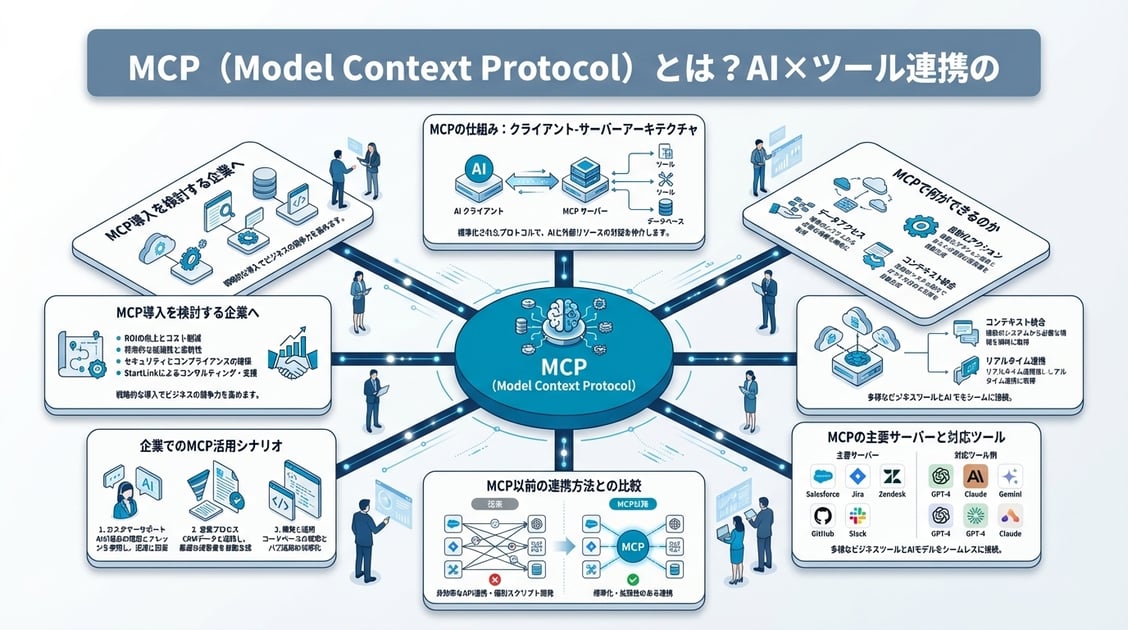 - MCPは「AIとツールを結ぶUSB-C」であり、AIエージェントの業務自動化の基盤インフラ