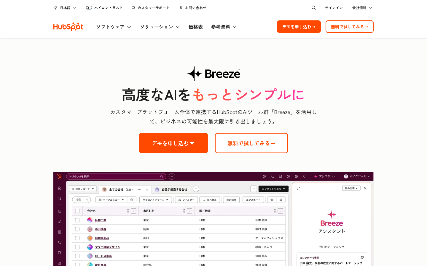 | Breeze Agents | 自律的にタスクを実行するAIエージェント | コンテンツエージェント、ソーシャルエージェント、案件創出エージェント、カスタマーエージェント |