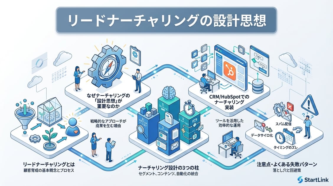 本記事では、リードナーチャリングの設計思想を、個別のテクニックではなく全体フローの観点から解説します。