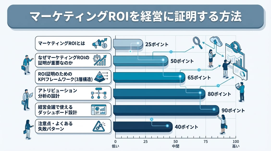 本記事では、マーケティングROIを正しく計測し、経営層に証明するためのKPIフレームワークとダッシュボード設計を解説します。