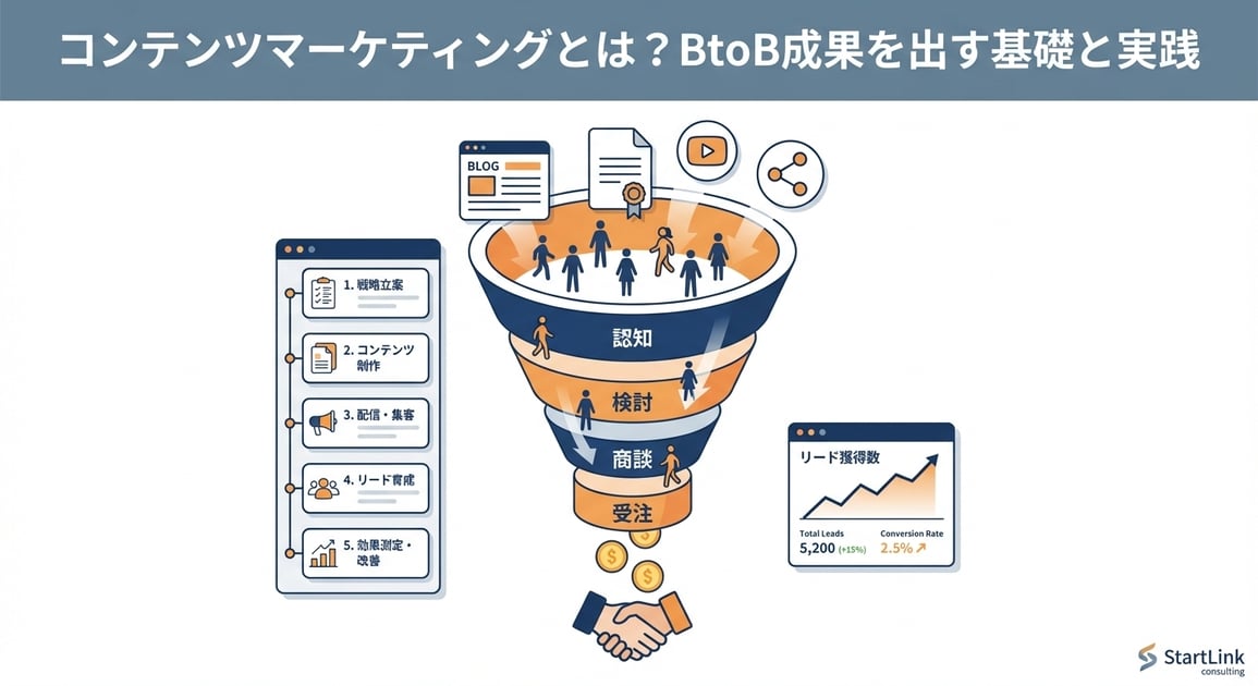 この記事は、BtoBマーケティングカテゴリ「コンテンツ・SEO」のガイドページです。各記事は、HubSpot認定パートナーであるStartLinkが実務経験をもとに執筆しています。