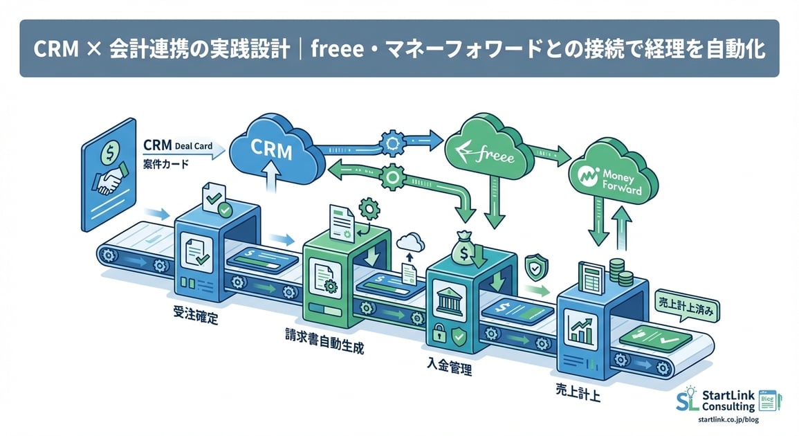 本記事では、HubSpotをはじめとするCRMと、freee・マネーフォワードなどの会計ソフトを連携させ、受注から請求・入金管理までを自動化する実践設計を解説します。