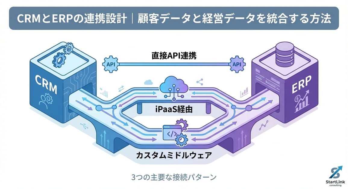 CRMとERPの連携は「あったら便利」ではなく、事業が一定規模を超えた段階で「なければ回らない」インフラ設計です。本記事では、CRMとERPの連携設計について、設計思想から具体的な連携パターン、導入ステップまでを体系的に解説します。
