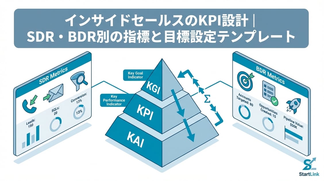 この記事では、SDR・BDR別のKPI体系、目標設定の計算ロジック、そしてすぐに使えるダッシュボードテンプレートまで実践的に解説します。KPI設計に悩む営業マネージャーの方はぜひ参考にしてください。