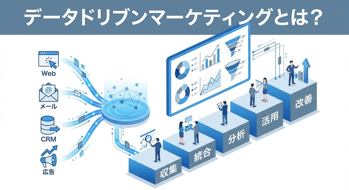本記事では、データドリブンマーケティングの正しい定義と、BtoB企業が実践するための5ステップ、必要なツールスタック、そして成功事例を具体的に解説します。データ活用に取り組みたいが何から始めればよいか分からないという方に、明確なロードマップを提供します。