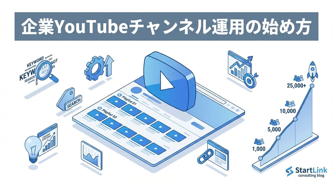企業YouTubeチャンネルの戦略立案から運用支援まで、StartLinkが伴走します。お気軽にご相談ください。