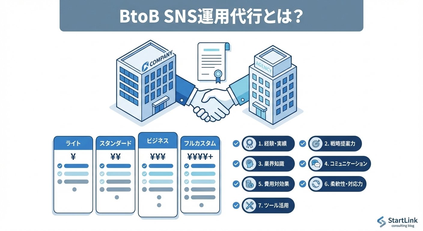 本記事では、BtoB企業がSNS運用代行を検討する際に知っておくべき費用相場、代行会社の選び方、自社運用との比較判断基準、そして契約時の注意点まで、意思決定に必要な情報を網羅的に解説します。