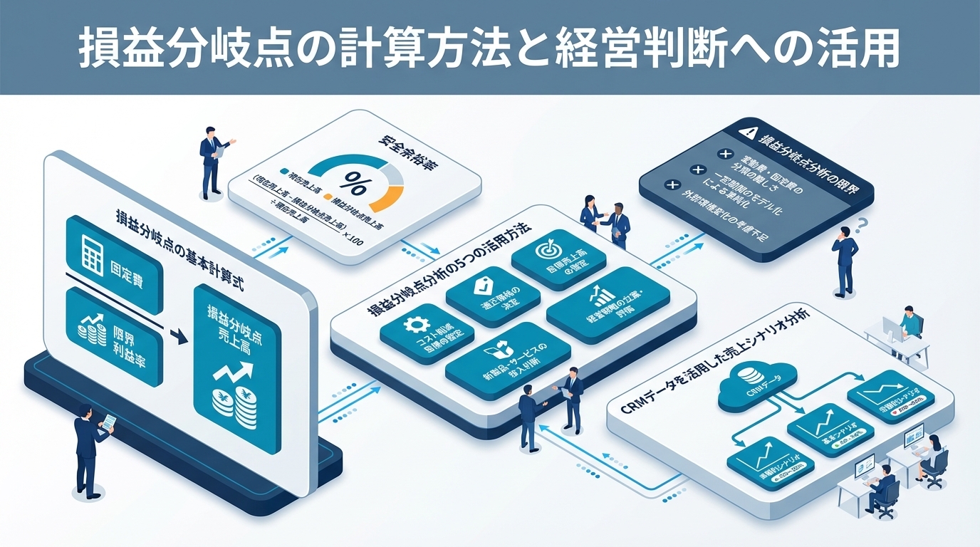 metaDescription: "損益分岐点の計算方法と経営判断への活用を解説。損益分岐点売上高の算出、安全余裕率、目標利益の逆算、シミュレーション分析まで実務的に紹介します。"