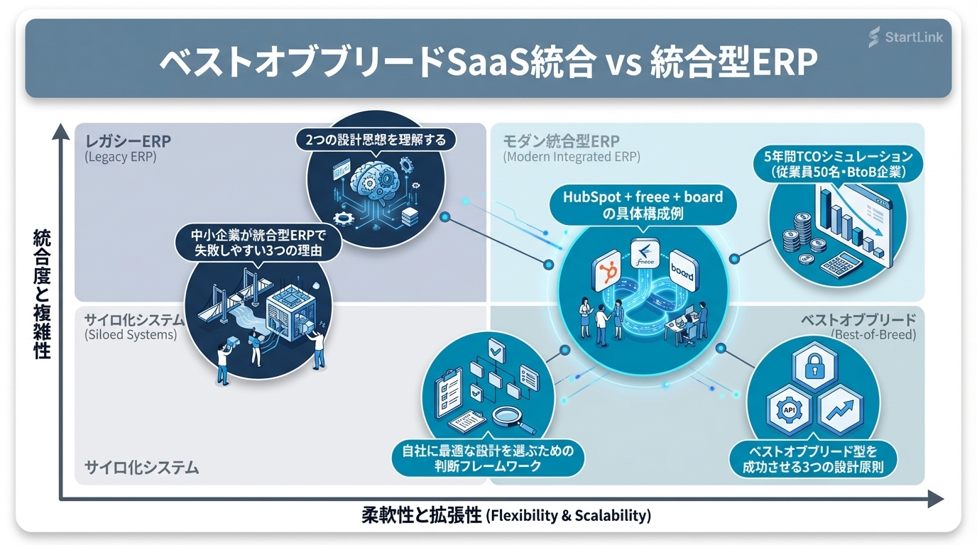 title: ベストオブブリードSaaS統合 vs 統合型ERP|中小企業が選ぶべき業務基盤の設計思想