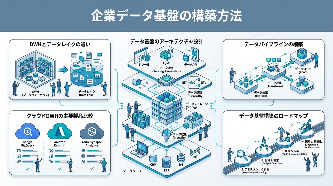 title: "企業データ基盤の構築方法|DWH・データレイクの設計とクラウド活用ガイド"