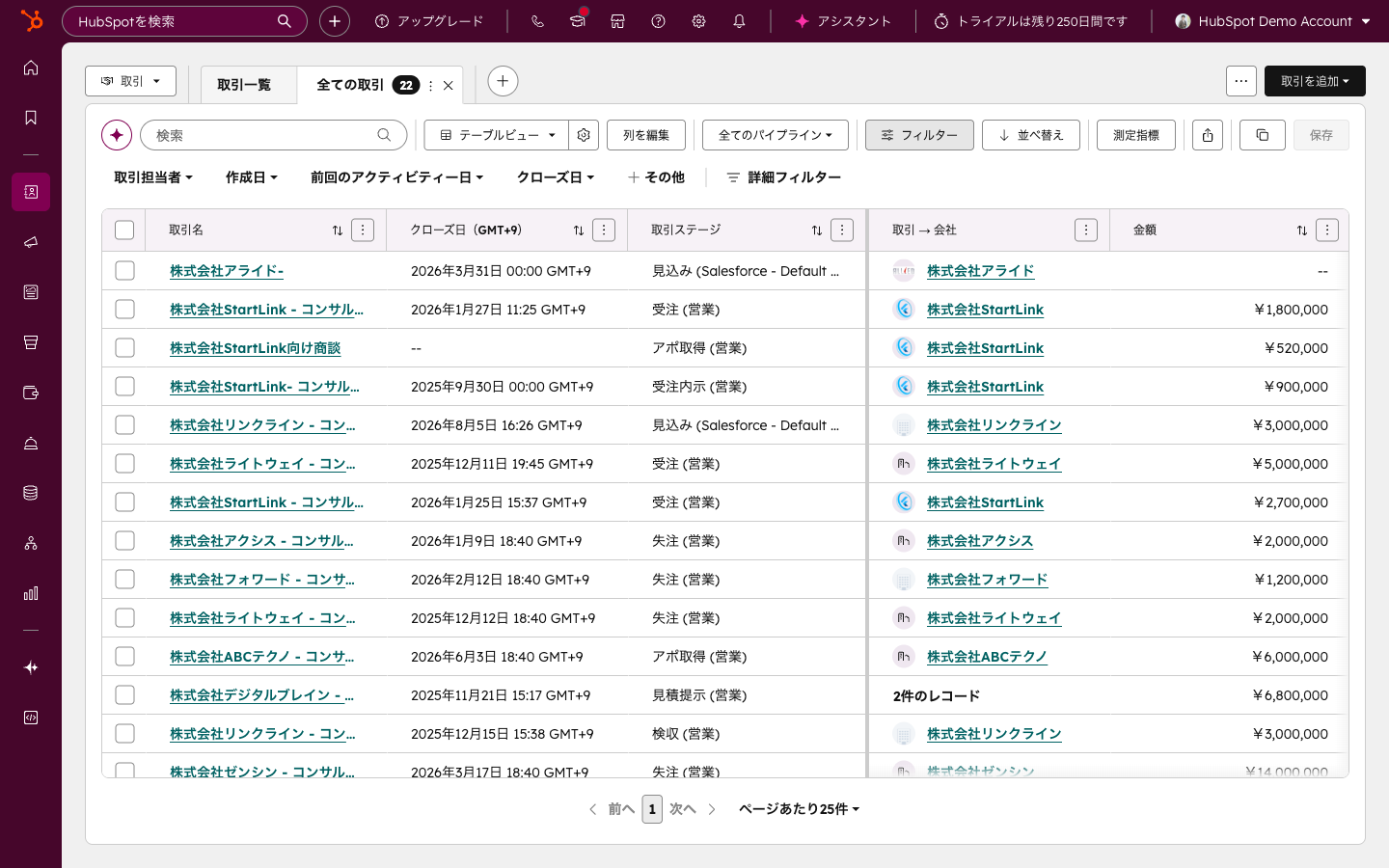 基本的な取引プロパティの設定と簡易レポートは全プランで可能です。カスタムレポートやダッシュボードを活用した本格的な分析にはSales Hub Professional以上が推奨されます。