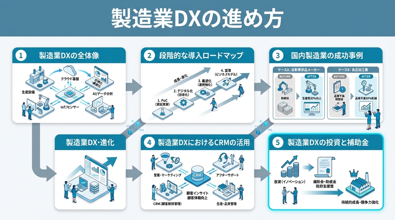 title: "製造業DXの進め方|スマートファクトリー実現へのロードマップと成功事例"