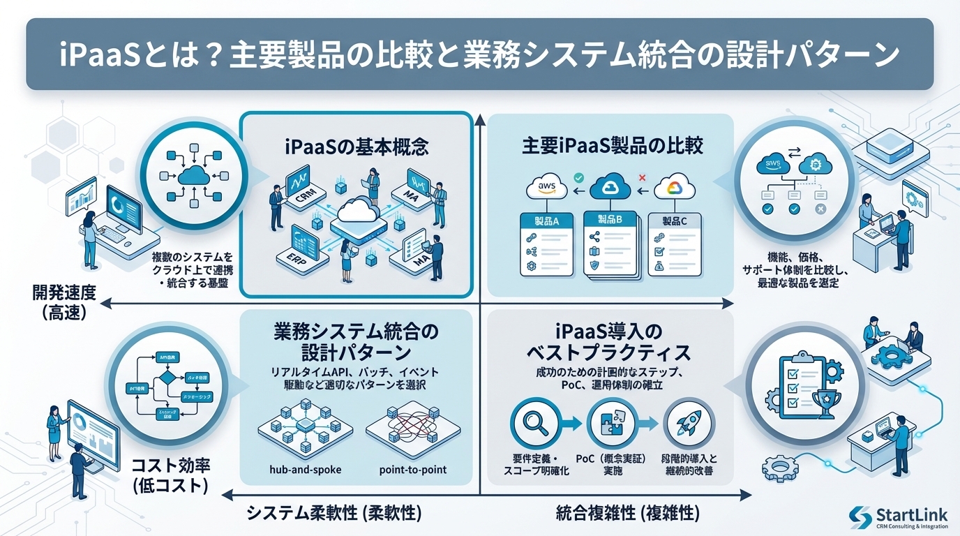 本記事では、iPaaSの基本概念、主要製品の比較、そして業務システム統合の設計パターンを解説します。
