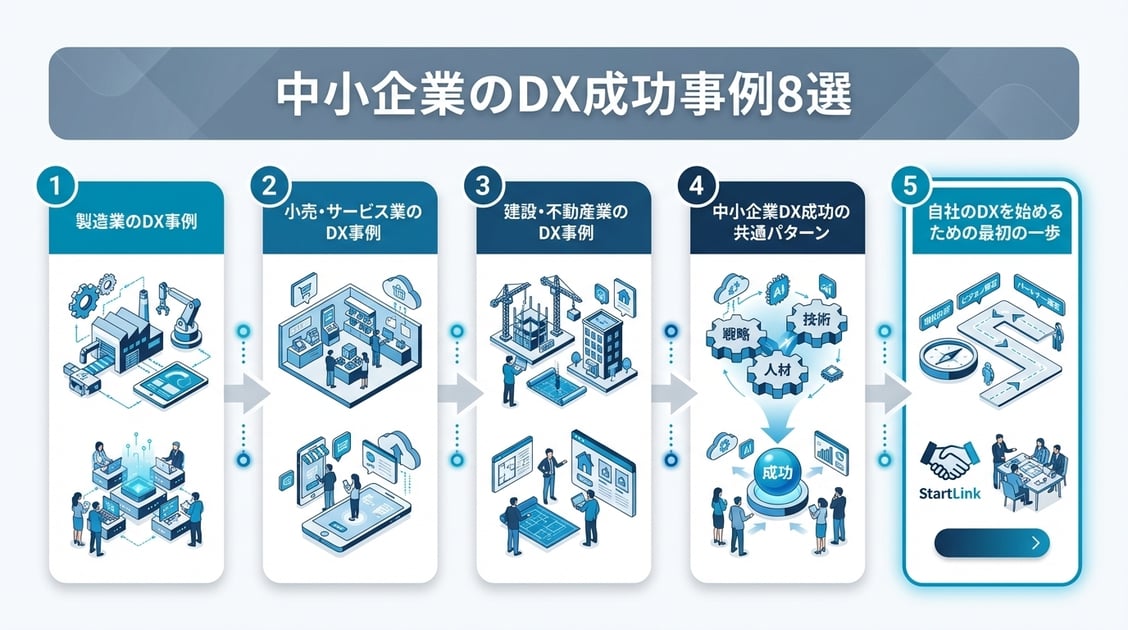 8つの事例から、中小企業がDXで成功するための共通パターンが見えてきます。