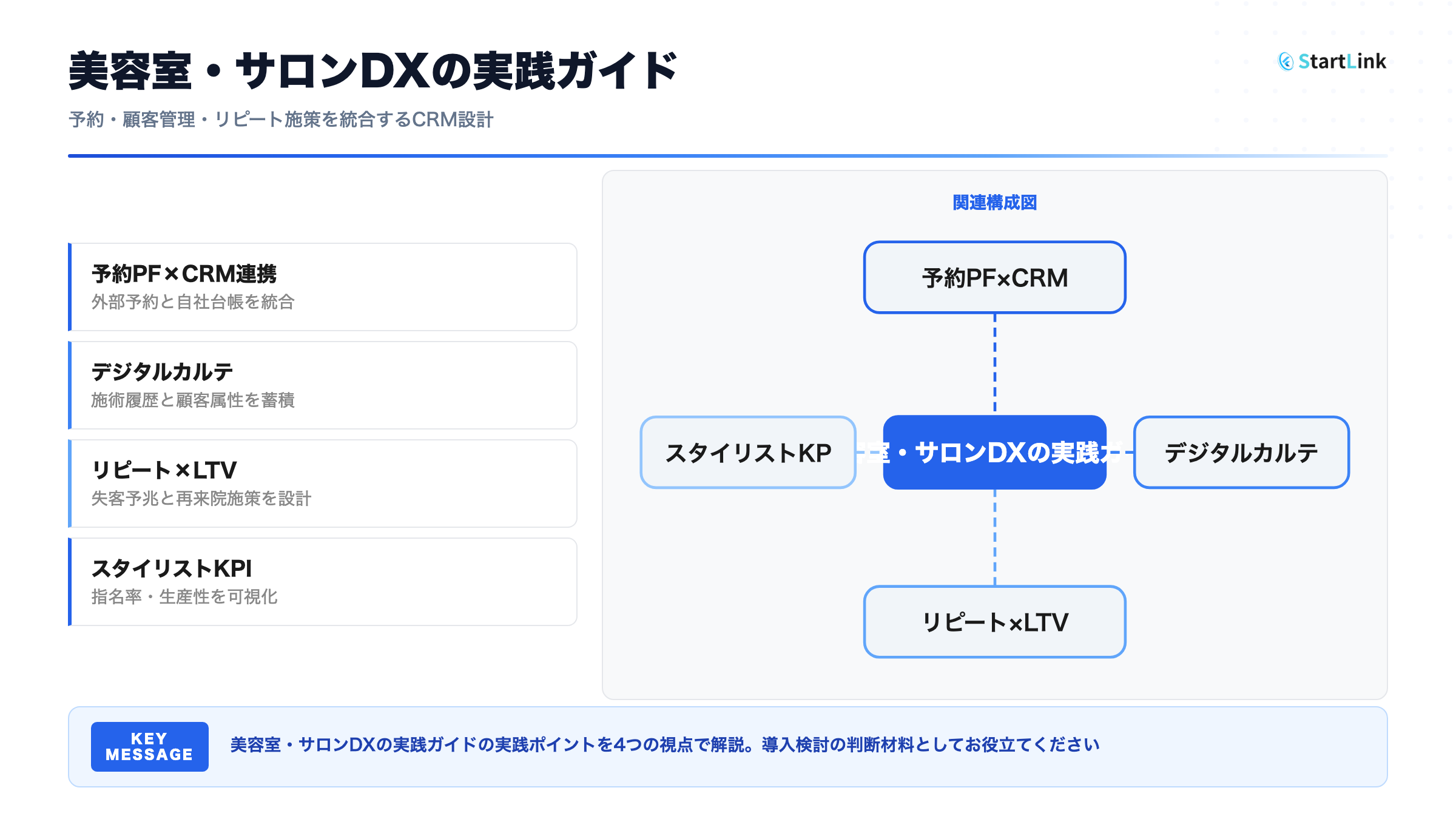 「スタイリスト頼りの集客から脱却して、店舗として持続的なリピートを作りたい」「多店舗展開に向けて顧客データの基盤を整えたい」とお考えのオーナー・経営者の方に、特におすすめの内容です。