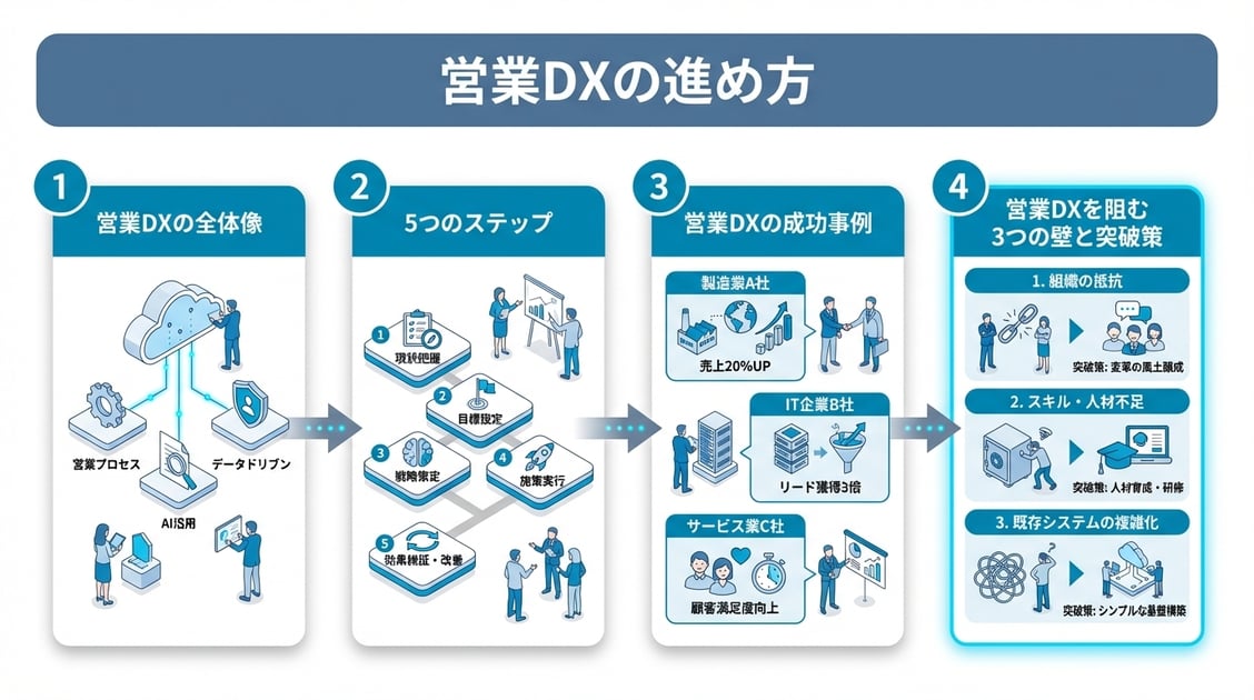 - 営業DXを阻む3つの壁(現場の抵抗・データ品質・経営層の理解)と突破策