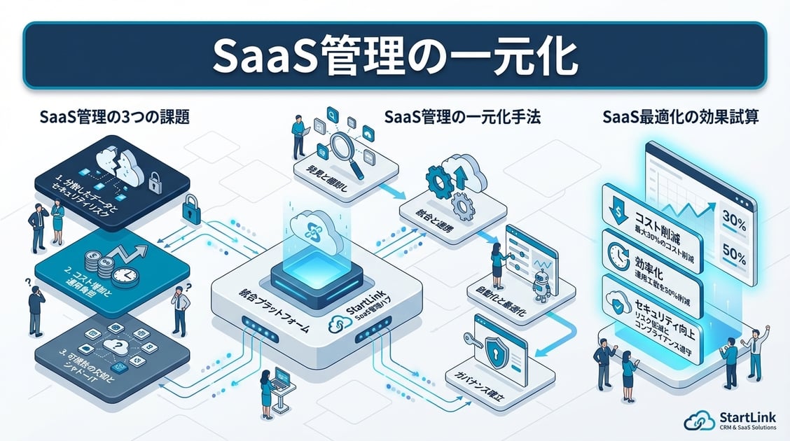 - SaaS管理は棚卸し→利用状況可視化→コスト最適化→セキュリティ統制の順で一元化する