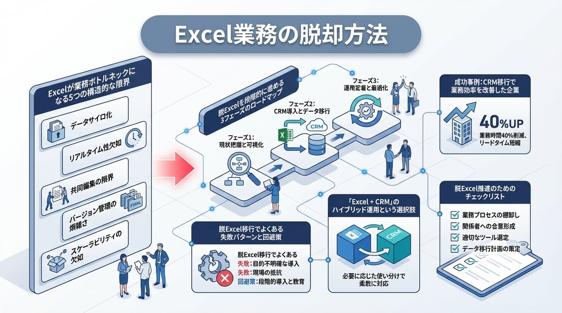 詳しい移行手順は「ExcelからCRMへの移行ガイド」で解説しています。