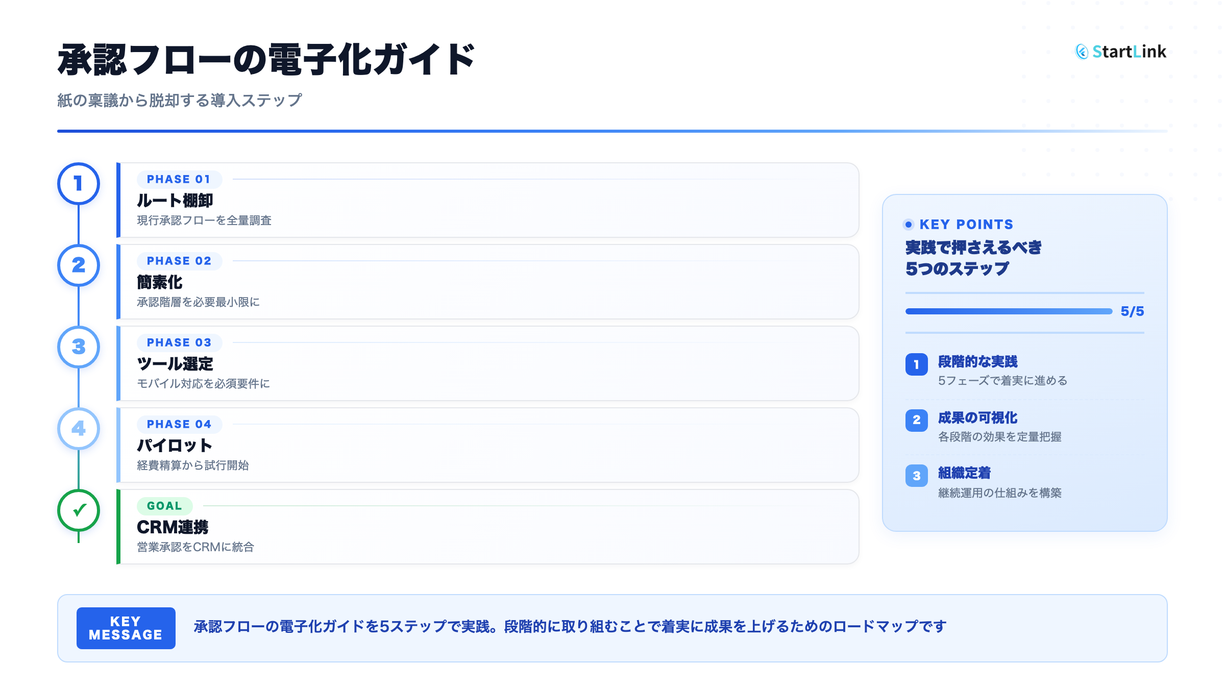 この記事を読むことで、承認フローの電子化の全体像を理解し、自社で実践するための具体的な知識が得られます。