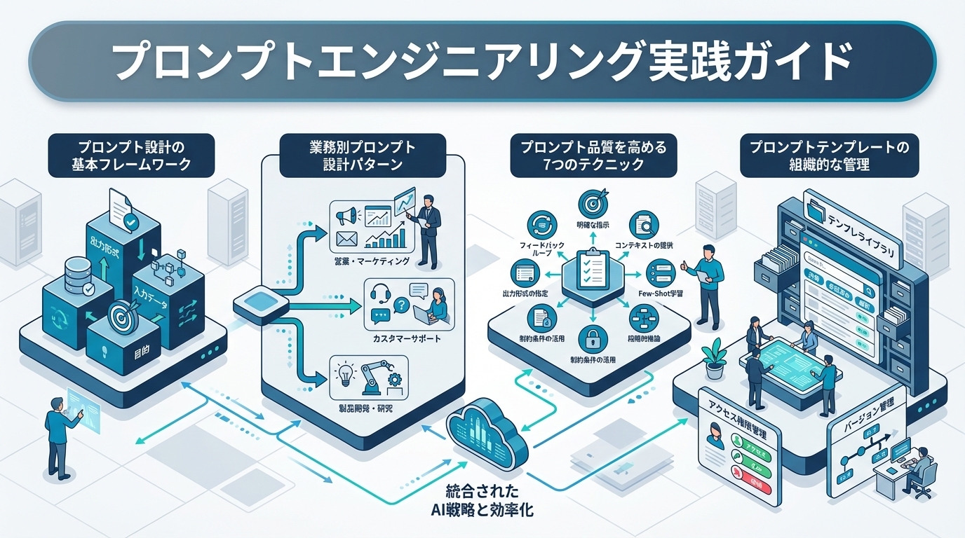 metaDescription: "ビジネスで成果を出すプロンプトエンジニアリングの実践手法を解説。営業・マーケ・CS各部門で使える具体的なプロンプト設計パターンと品質を高めるテクニックを紹介します。"
