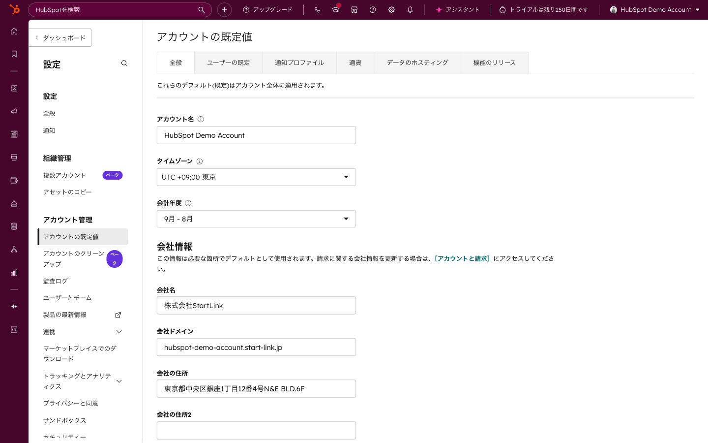 会社の基本プロパティ:
