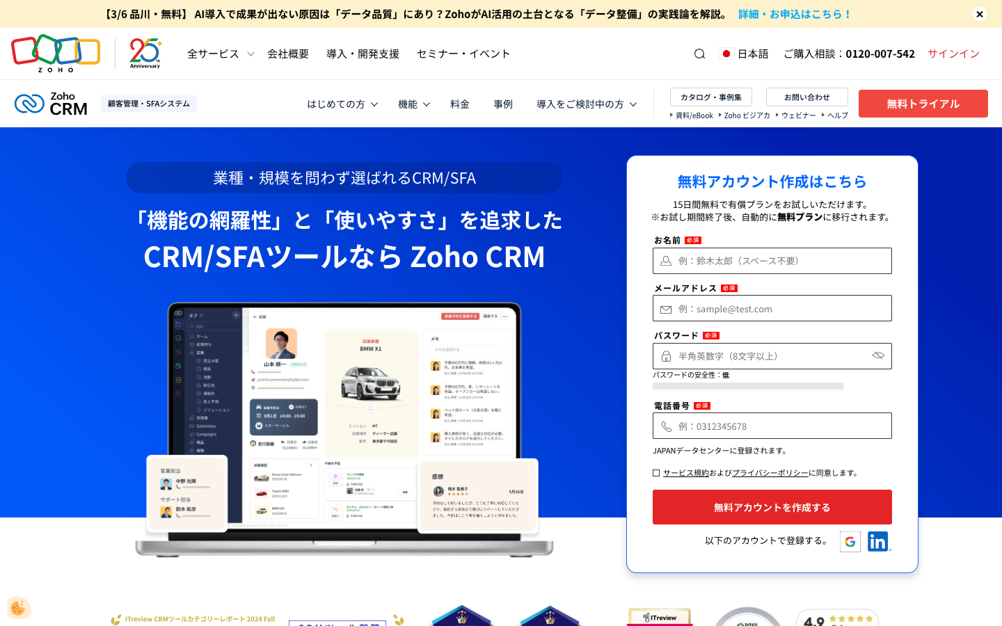 Zoho CRMの無料プラン