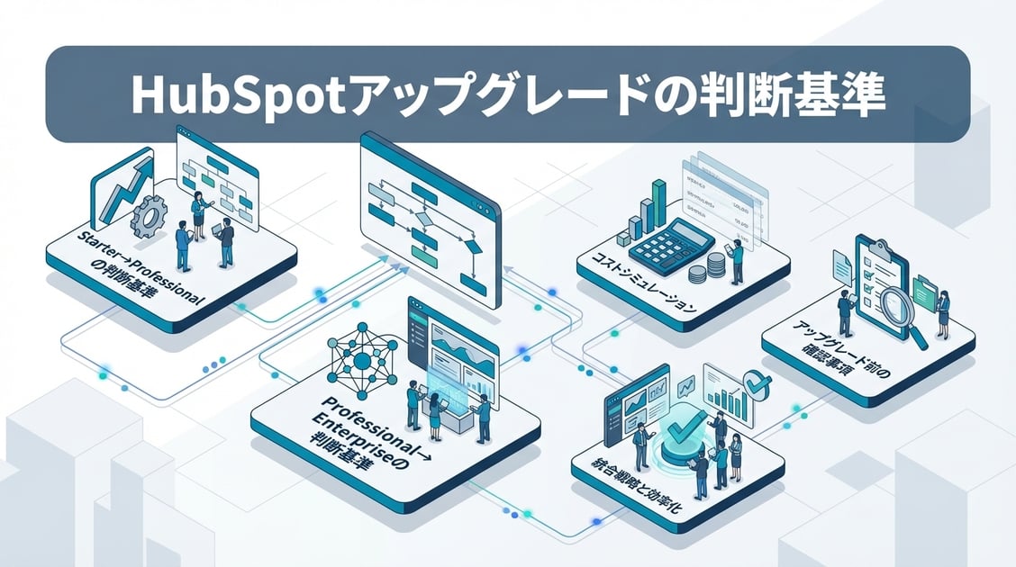 「Starterプランで始めたけれど、そろそろProfessionalにすべきか迷っている」「Professionalの次はEnterpriseだが、本当に必要なのかわからない」——HubSpotのプランアップグレードは、タイミングを間違えるとコストの無駄になり、逆に遅すぎると業務効率化の機会を逃します。