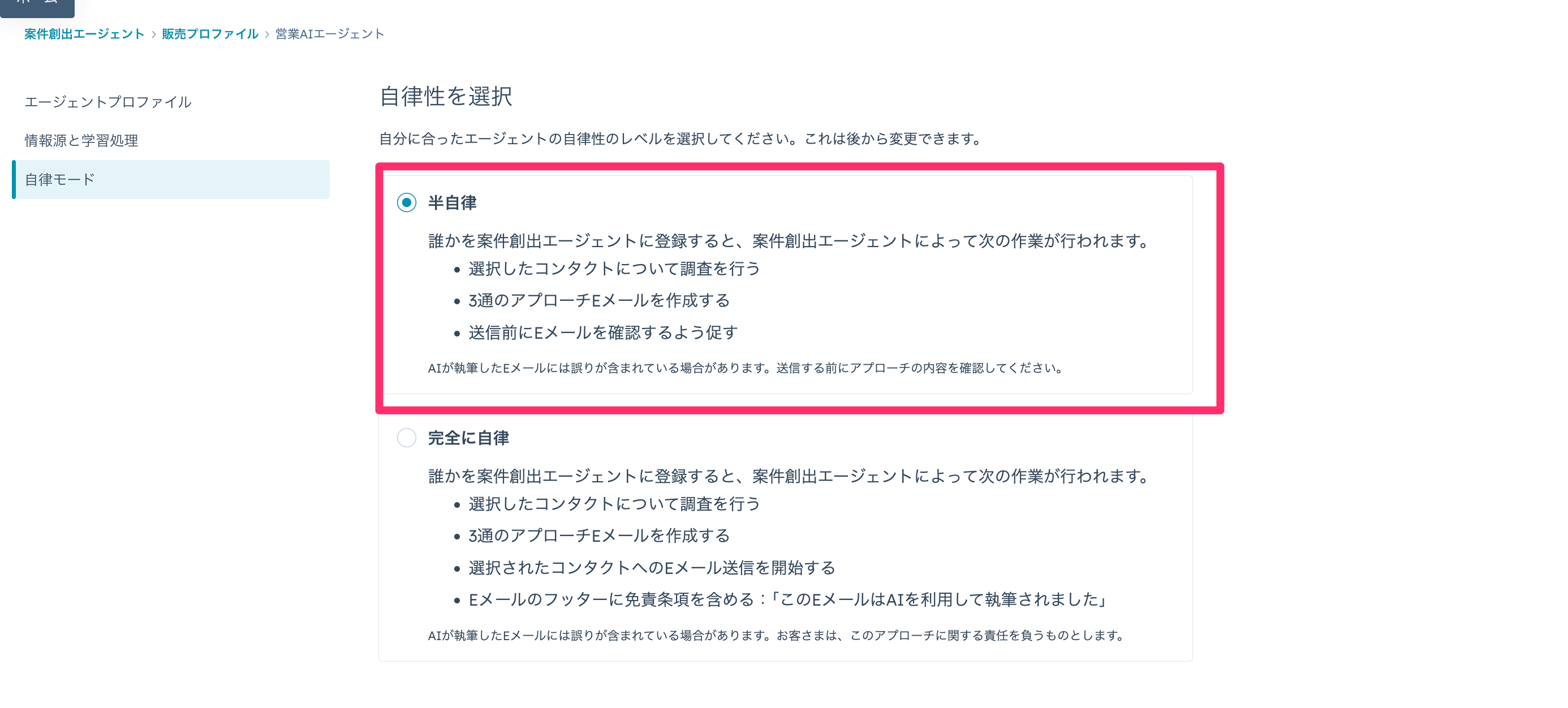 - そのリストへの追加をトリガーとして、案件創出エージェントを「半自動モード」で起動させます。