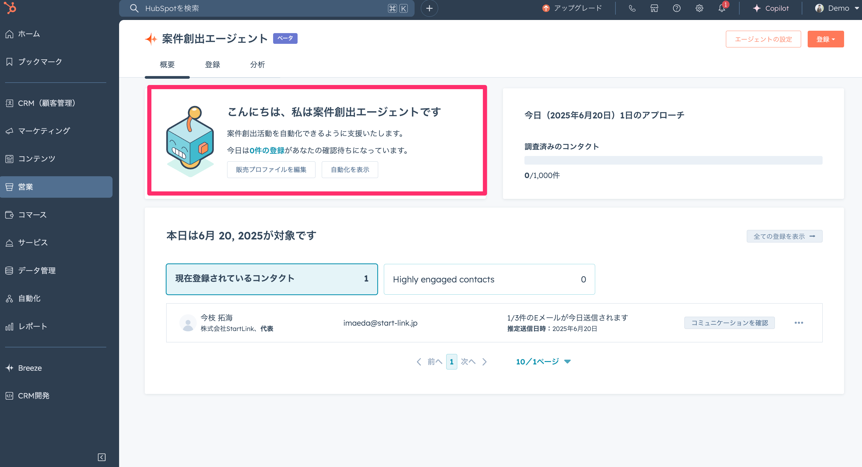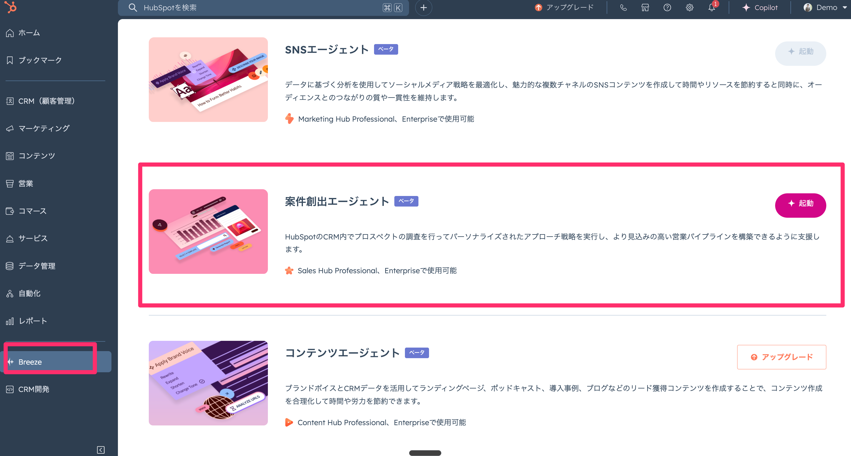 Breeze案件創出エージェントで営業アプローチを拡大|HubSpot(ハブスポット)