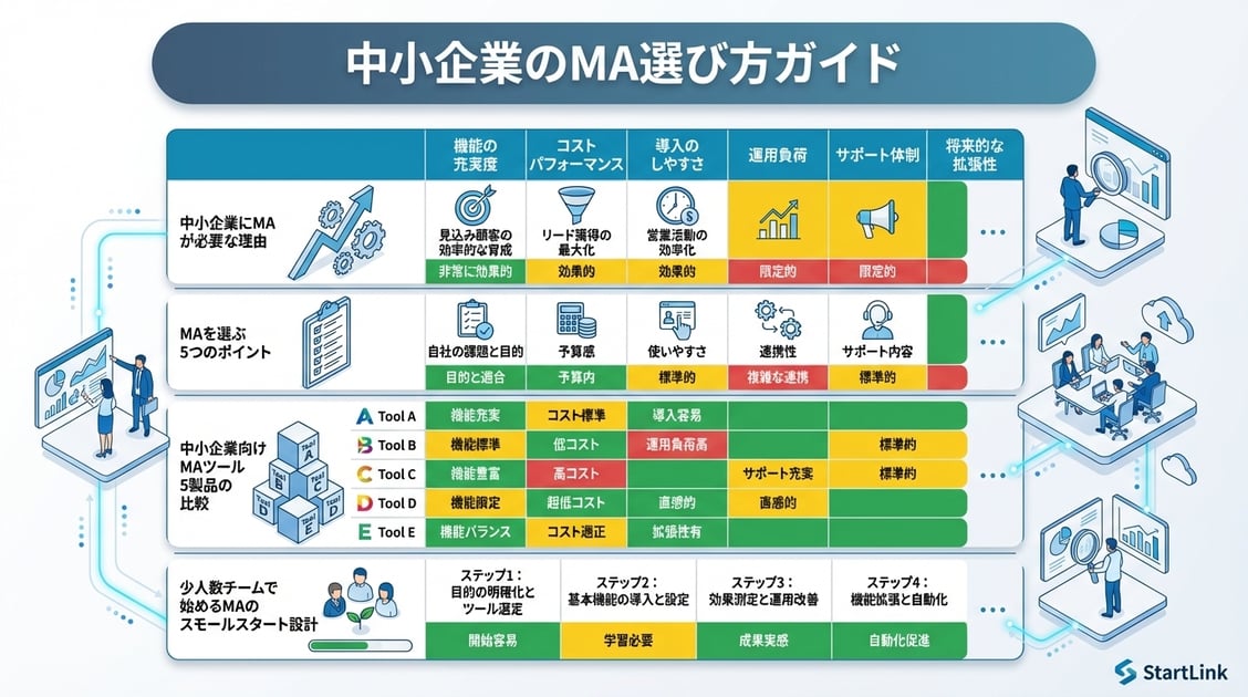 中小企業のMA選びで最も重要なのは、「少人数でも運用を回せる設計」を前提にツールを選ぶことです。