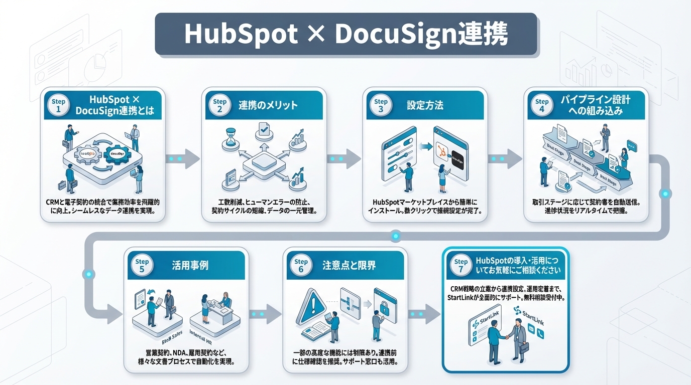 この記事では、HubSpot × DocuSign連携のメリットから設定方法、商談フローへの組み込み設計まで解説します。