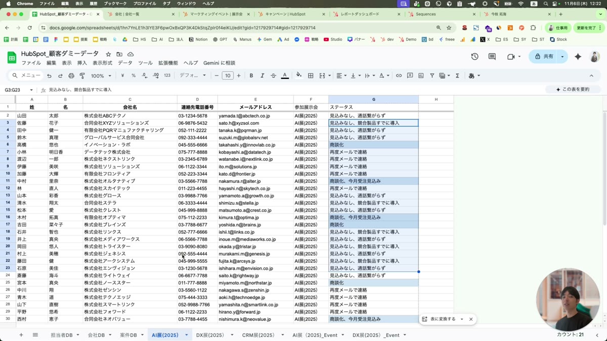 HubSpotを活用することで、展示会管理が劇的に効率化されます。スプレッドシートのようなデータ分断がなくなり、すべての情報が1箇所に集約されます。