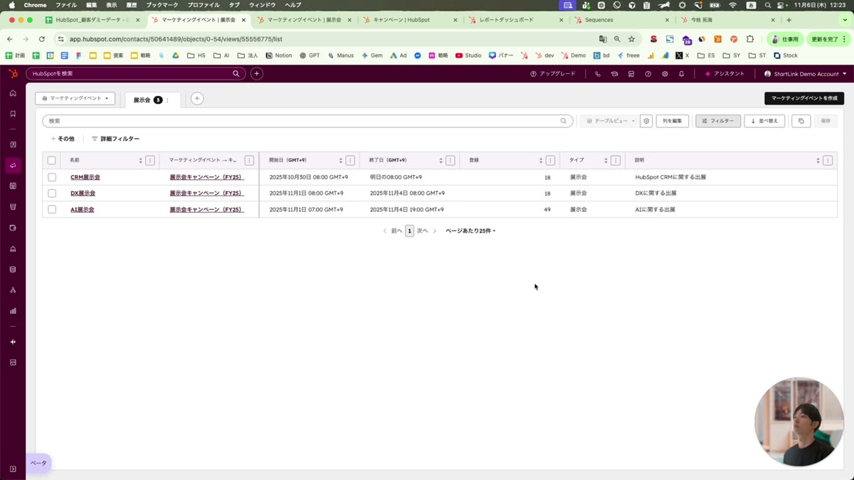 HubSpotのマーケティングイベント機能を使えば、展示会ごとに参加者を簡単に管理できます。この機能こそが、スプレッドシートの「展示会ごとにシートが増える問題」を解決する鍵です。