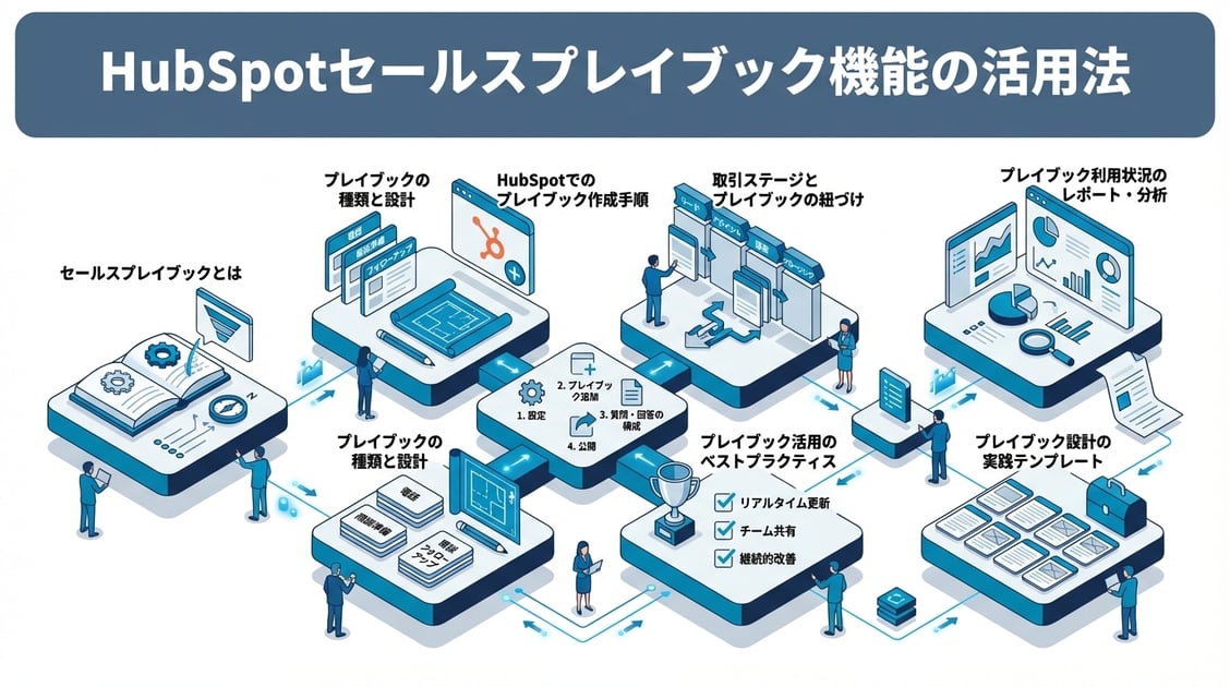 この記事では、HubSpotプレイブック機能の概要から、プレイブックの種類と設計方法、作成手順、商談ステージとの紐づけ、利用状況のレポーティングまでを詳しく解説します。