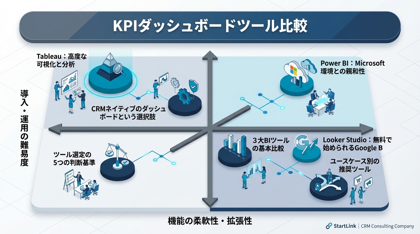 title: "KPIダッシュボードツール比較|Tableau・Power BI・Looker Studioの選び方"