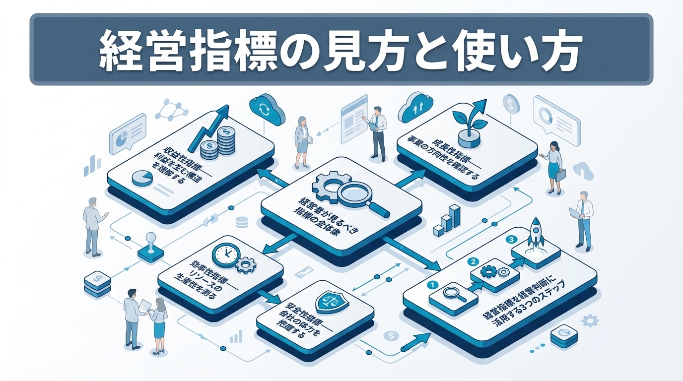 経営指標は、収益性・効率性・安全性・成長性の4カテゴリに分類して体系的に把握することが重要です。すべての指標を追う必要はなく、自社の経営課題に直結する3〜5個の重点指標に絞り、月次でレビューする仕組みを構築しましょう。