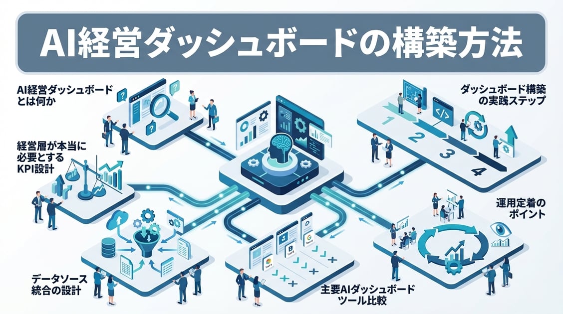 本記事では、AI経営ダッシュボードの設計思想から、データソースの統合方法、そして運用定着までの実践的なアプローチを解説します。