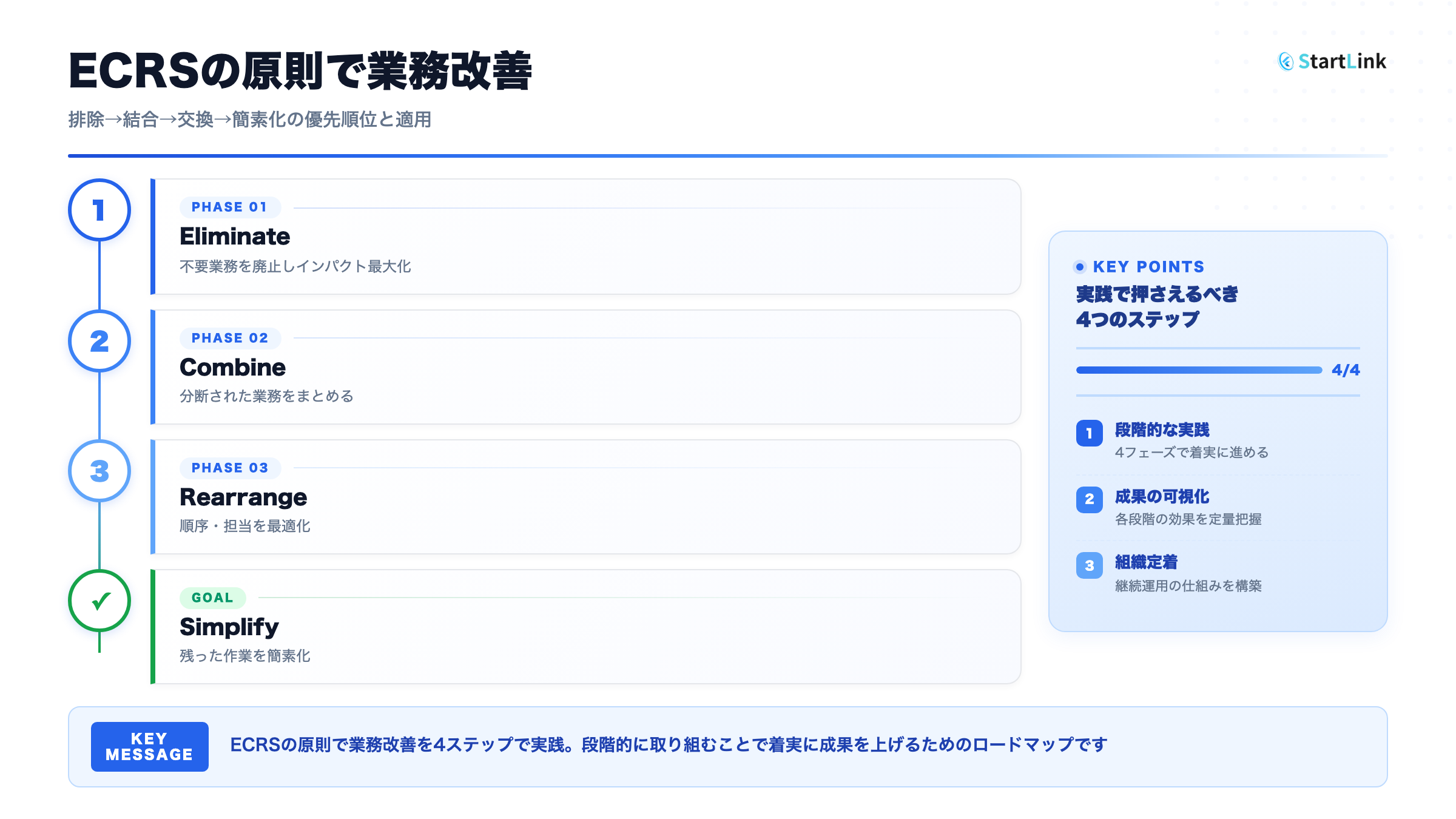 ECRSの4つのステップには、明確な優先順位があります。