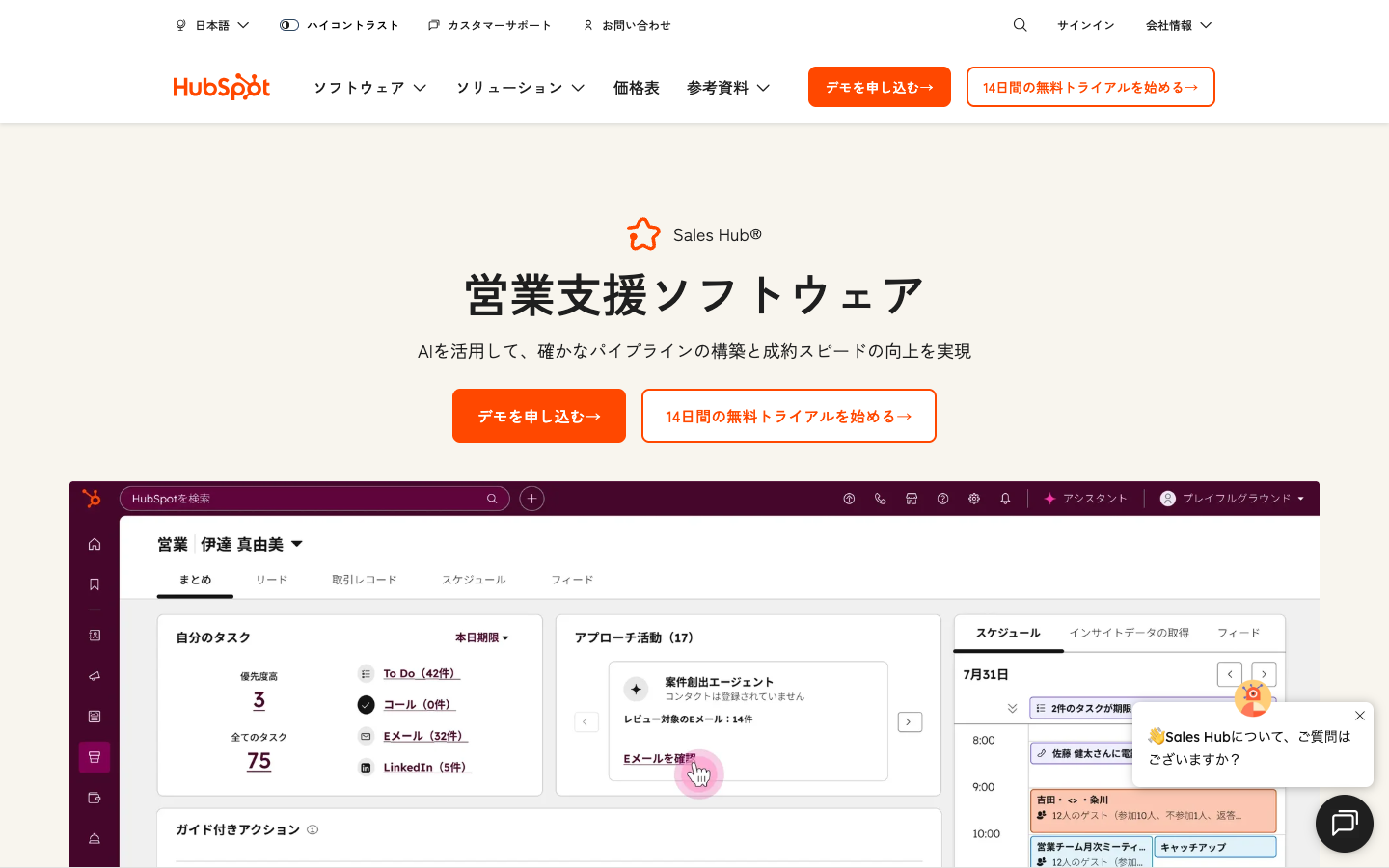 レポート機能では、パイプラインの状況、ステージ別のコンバージョン率、担当者別のパフォーマンス比較、活動量の推移など、生産性の改善に必要なデータをダッシュボードで一元的に可視化できます。定期的にレポートを確認する習慣をチームに根づかせることで、データに基づくマネジメント文化が形成されます。
