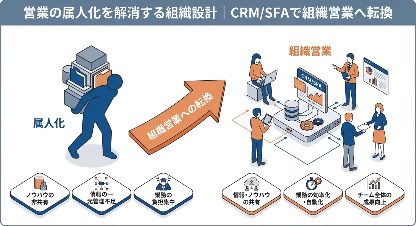 - CRM/SFAが属人化解消の「基盤」として機能する理由
