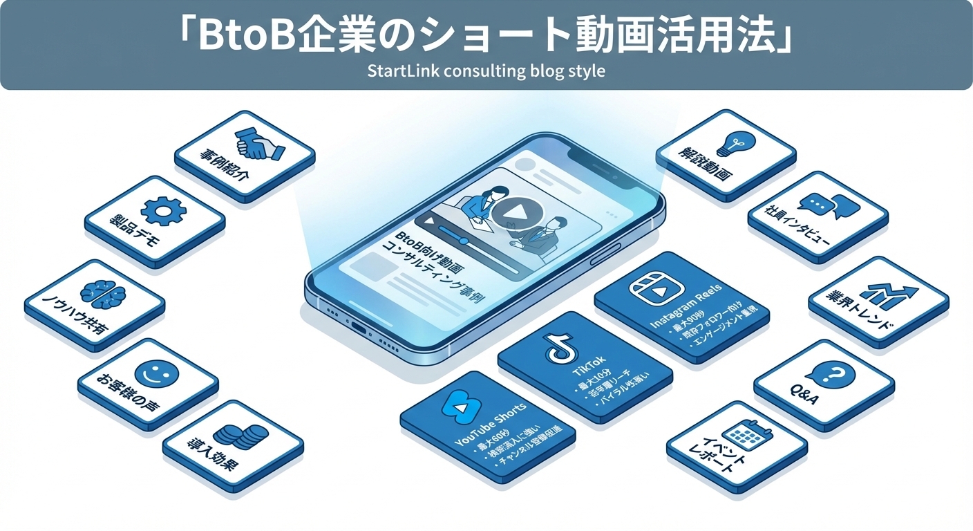 BtoB企業のショート動画戦略について、StartLinkにご相談ください。コンテンツ企画から制作支援まで、実践的にサポートします。